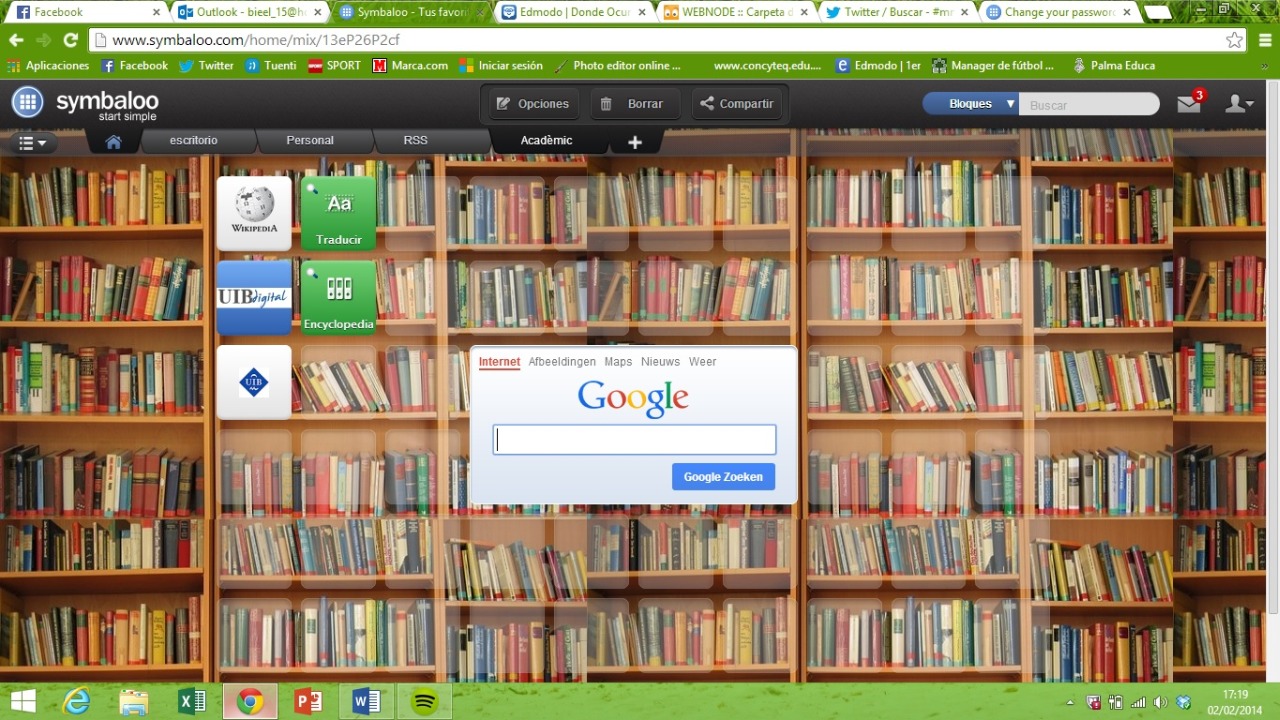 Aquesta eina crec que és una bona alternativa a la pàgina d'inici de la majoria de navegadors com és Google. A symbaloo el Google ja hi està integrat i, a més, n'hi podem afegir moltes més com si fossin els marcadors del navegador a les webmix de l'aplicació però amb l'avantatge que hi podem accedir des de qualsevol punt del món i des-de qualsevol ordinador.
